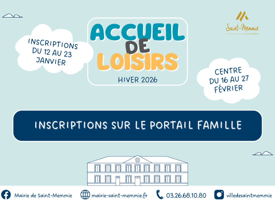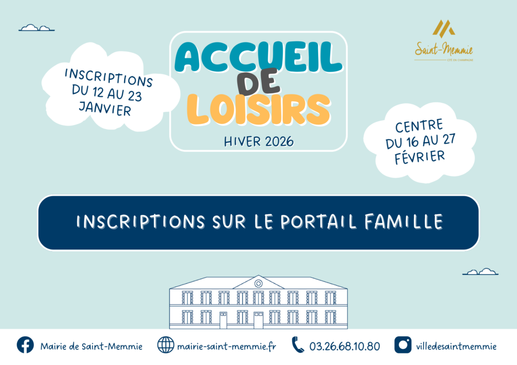 5 janvier 2026Inscriptions ALSH – Vacances d’Hiver 2026La campagne d’inscriptions se déroule du lundi 12 janvier au vendredi 23 janvier 2026