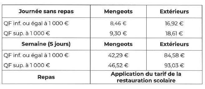 - Repas possible sur place par inscription préalable (application du tarif cantine scolaire).