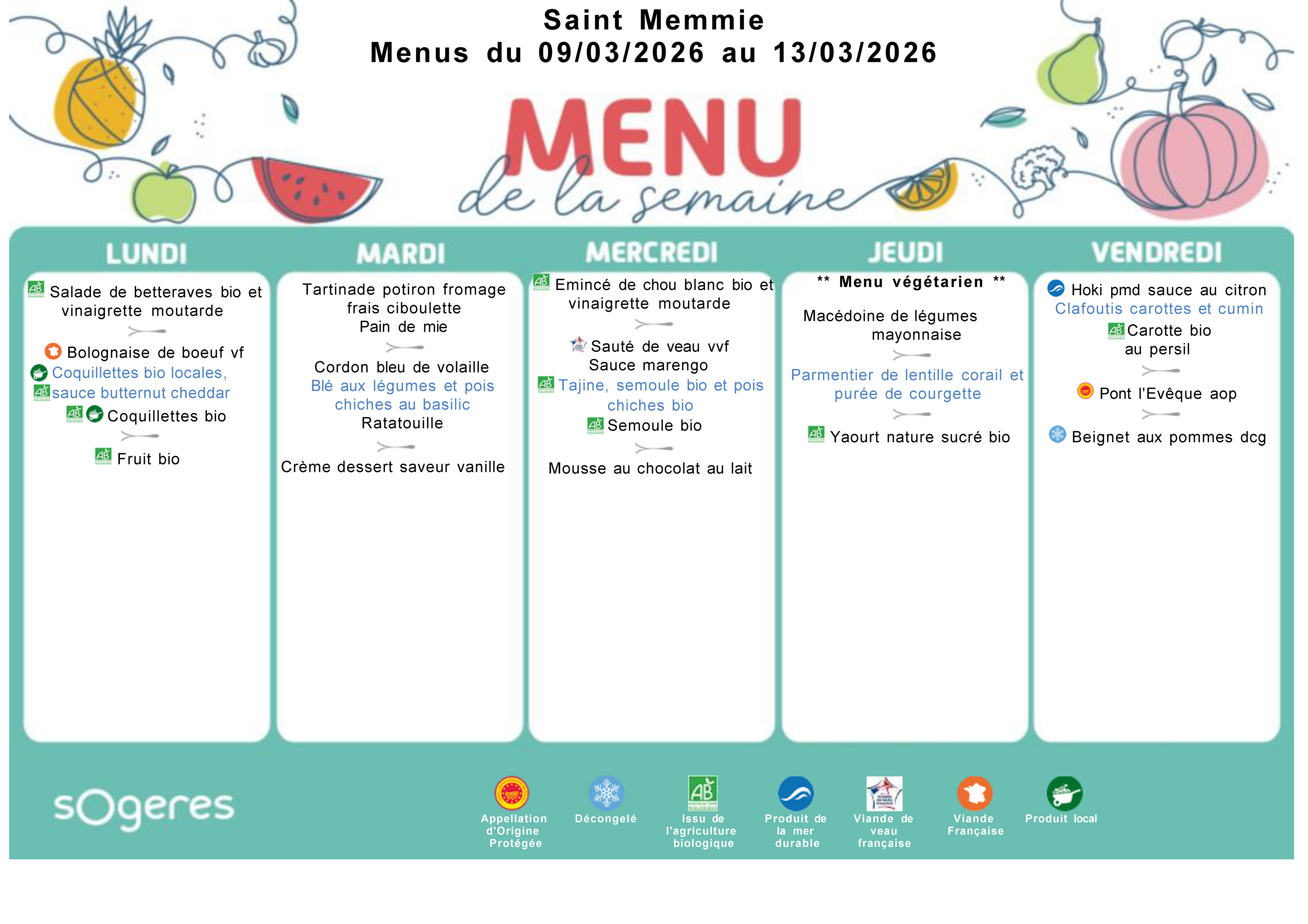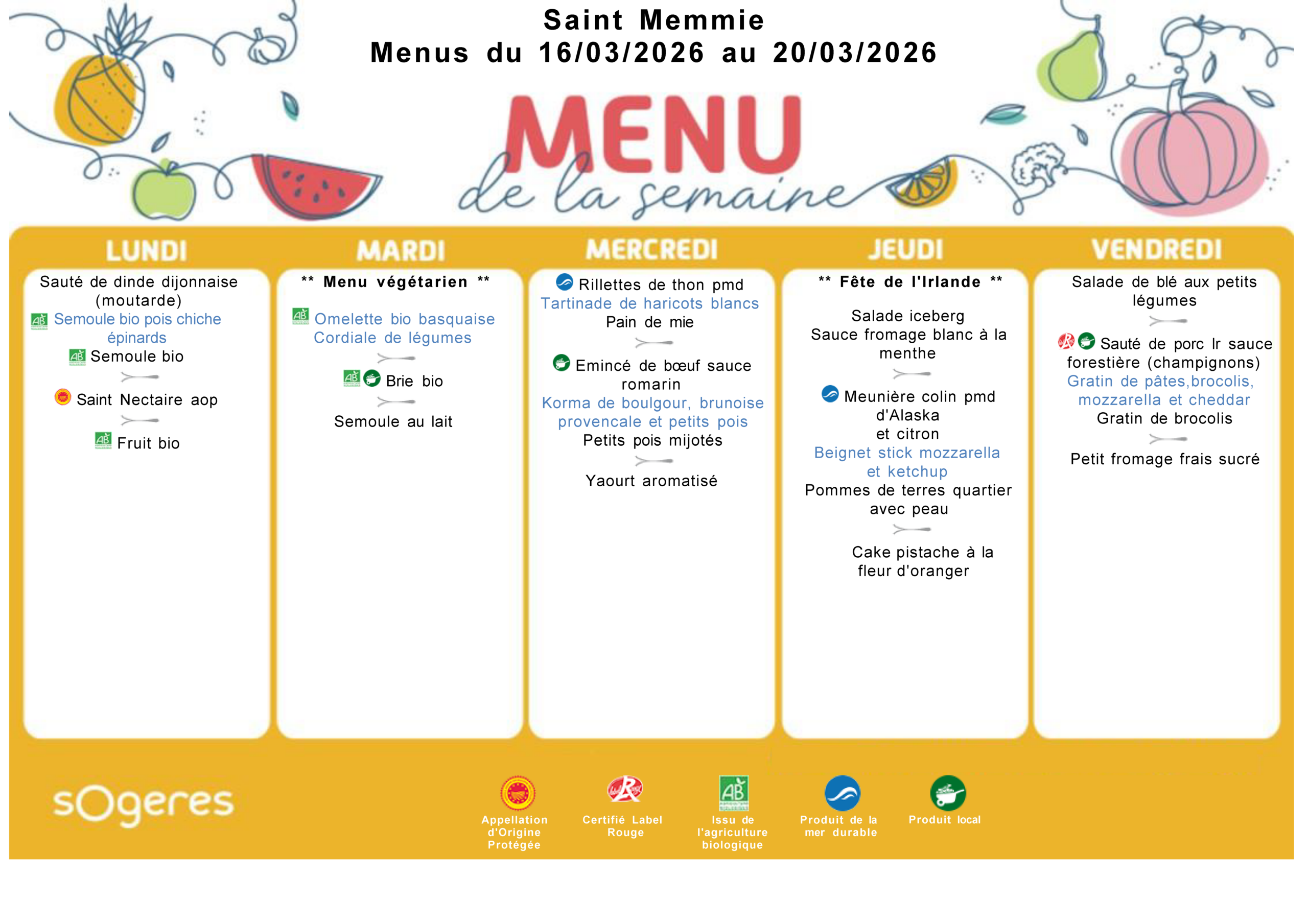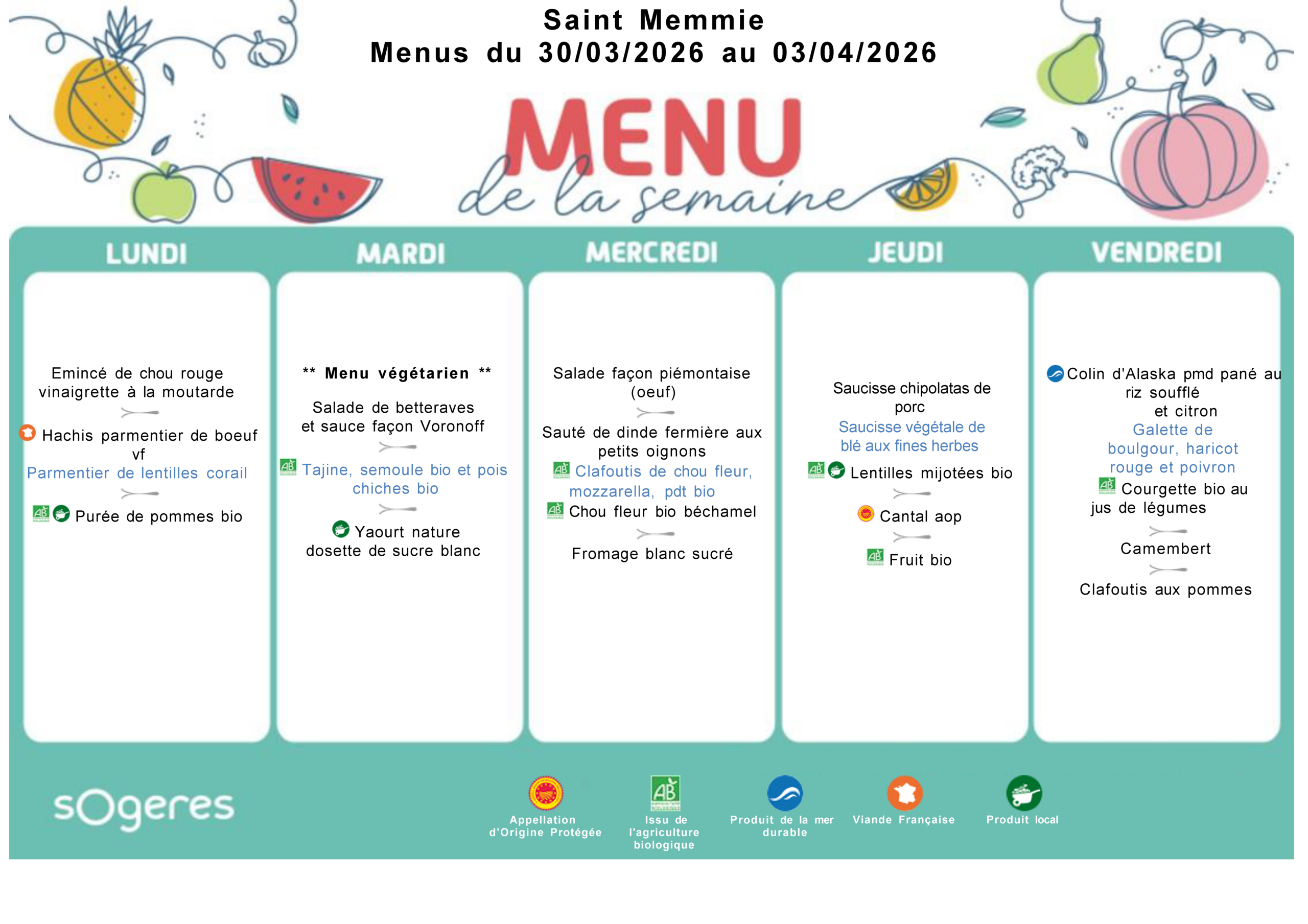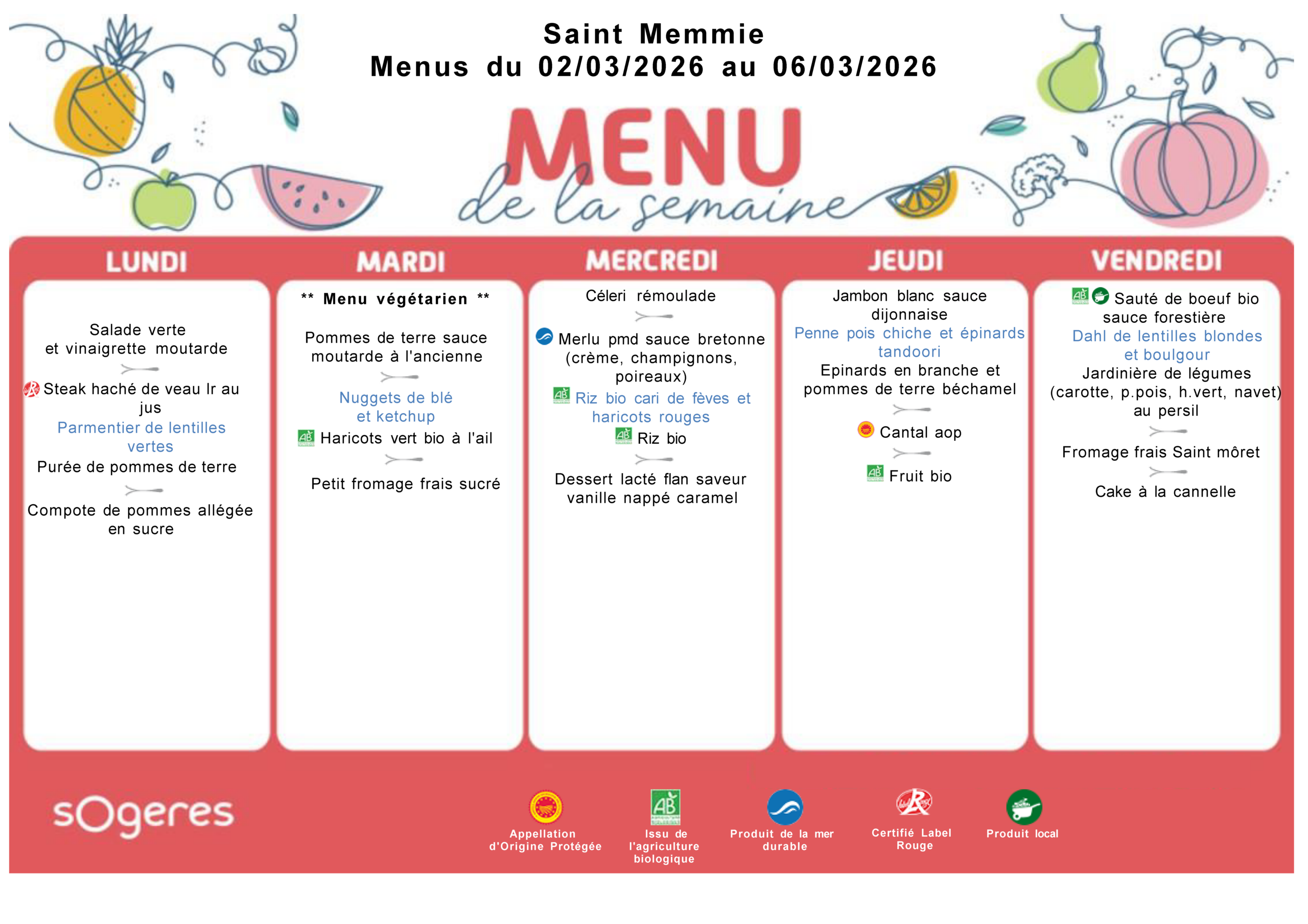 Les menus de la cantine