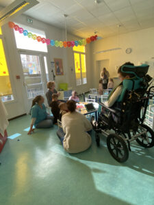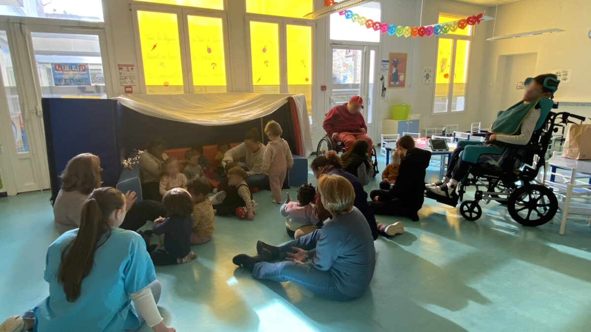 La crèche Graine de Malice a eu le plaisir d’accueillir pour la seconde fois 4 jeunes du CRM de Fagnières (centre de rééducation moteur) accompagnés par leurs psychomotricienne et ergothérapeute.