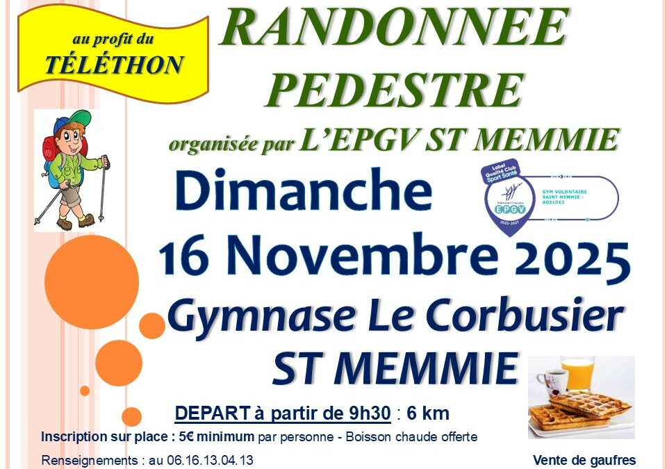 L’EPGV Saint-Memmie organise une randonnée pédestre solidaire le dimanche 16 novembre 2025. Le départ sera donné à partir de 9h30 depuis le gymnase Le Corbusier. Le parcours proposé est d’une distance de 6 kilomètres, accessible à tous, dans une ambiance conviviale et chaleureuse.