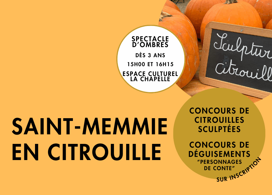 Saint-Memmie en Citrouille vous donne rendez-vous dimanche 12 octobre à partir de 15h00 dans le jardin de l’Hôtel de Ville pour un après-midi festif, familiale et haut en couleurs !